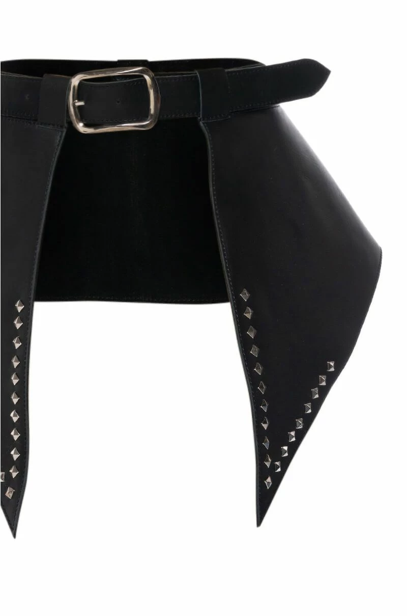 Add some edge to any ensemble with The AKIRA Label A Little Something Extra Genuine Leather Studded Peplum Belt. This convertible piece features a real leather base, a classic black waist belt, silver metallic hardware, a buckle front closure, and a removable peplum design. Complete with square studded trim.