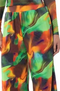 The AKIRA Label All Natural Wide Leg Pant is a stretchy pull-on pant featuring a wide elastic waistband, a flowy wide leg silhouette, a high rise design, and abstract print patterning throughout. Style these graphic bottoms with the coordinating AKIRA Label All Natural Mesh Long Sleeve to complete your look.