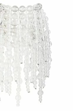 The AKIRA Label Clear Vision Statement Bracelet is an ornate beaded cuff bracelet featuring an elasticized base, clear acrylic beaded fringe, and metallic spacers.