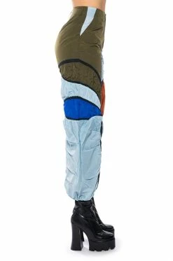 The AKIRA Label Enjoy The Ride Multicolored Ruched Pants are part of a chic and bold two-piece set, made from a lightweight, nylon base fabrication. It features a sleek waistband, an abstract color block design, ruching along the sides and legs, and slant side pockets. Complete with a parachute-pant silhouette, high rise waist with zipper to hook-and-eye front closure, and adjustable drawstring bottom hems. Style with the matching top, The AKIRA Label Enjoy The Ride Multicolored Crop Bomber, and slides for an off-duty athleisure ensemble.