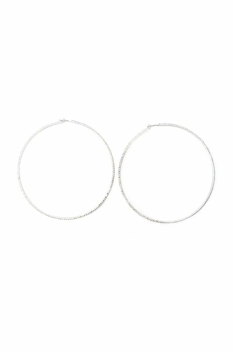 The AKIRA Label AB 80MM Rhinestone Hoops are a slender 80mm silver metallic hoop earring featuring AB rhinestone detailing and a classic post back fastening. Perfect size for adding sparkle to any ensemble!