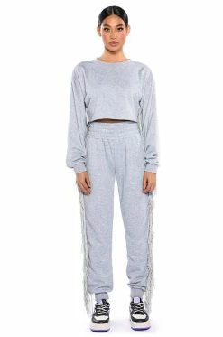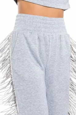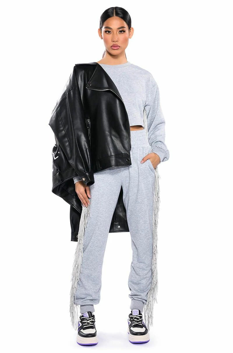 What the fringe! The AKIRA Label Fringe All The Way Joggers are ready to keep you comfy and cute. Crafted from soft terry cloth, these high rise sweatpants are complete with a smocked elastic waistband, side pockets, ribbed ankles, and fringe down the sides. Round out your chill-day look with the matching AKIRA Label Fringe All The Way Sweatshirt.