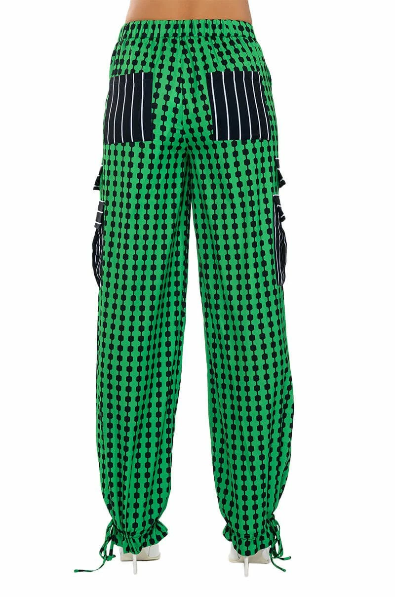 The AKIRA Label Patterns Please Pull On Pants feature a smooth, lightweight fabrication, a high rise waist with an elastic back band, a tapered leg fit, and adjustable tie up cinched ankle hems. Complete with flap front pockets, contrast cargo pockets, on seam side pockets, a concealed side zipper, and geometric print patterning. Pair this bold piece with the coordinating AKIRA Label Patterns Please Button Down Blouse to complete your look.