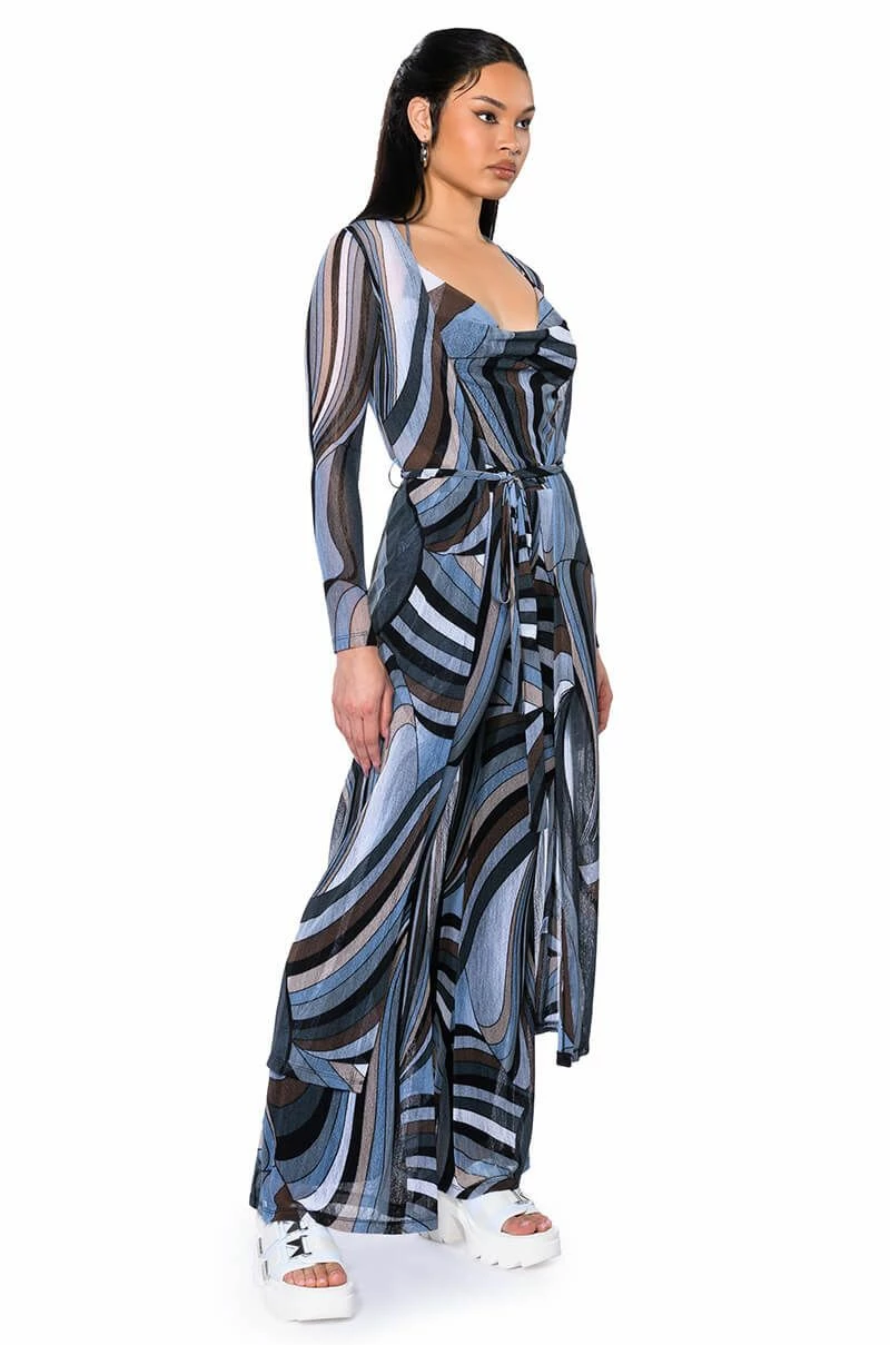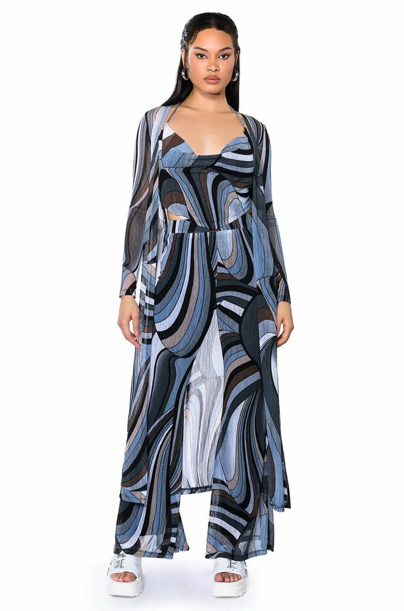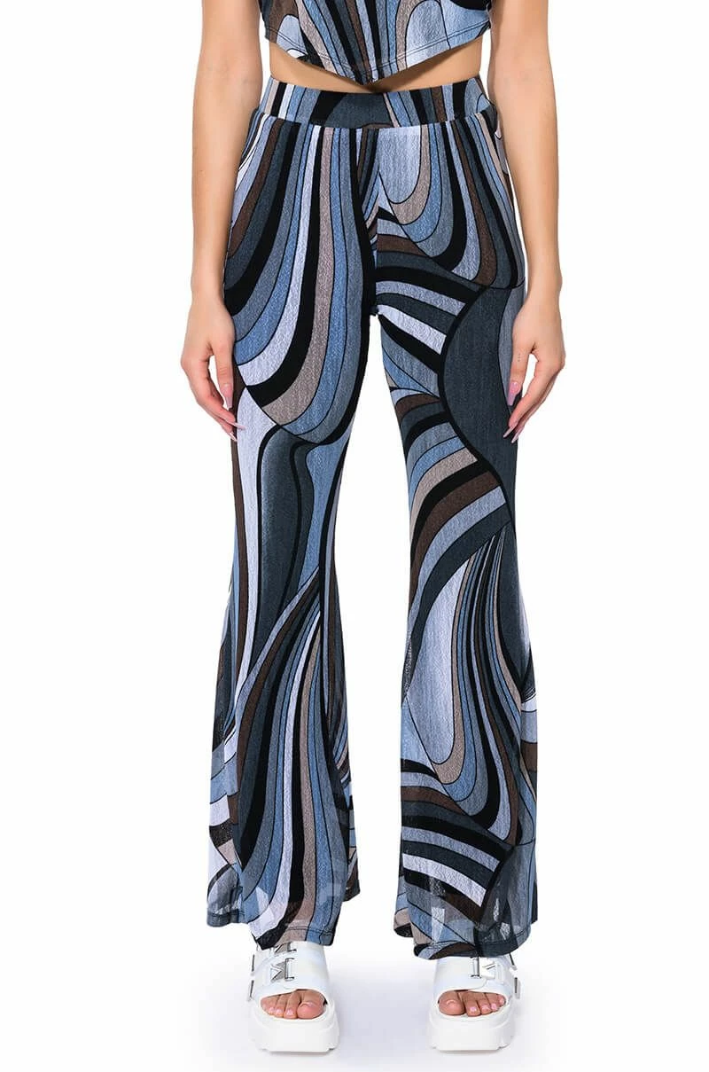 The AKIRA Label It Girl Wide Leg Palazzo Pants are made from a lightweight, lace textured base fabrication and features a high waist, an elastic waistband, a stretchy, form-fitting design, and extra wide flared hems. Complete with a beautiful abstract print, a soft inner lining, and a pull-on fit. Style with the matching top, The AKIRA Label It Girl Corset Tie Top, The AKIRA Label It Girl Duster, and platform heels for a finished look!