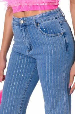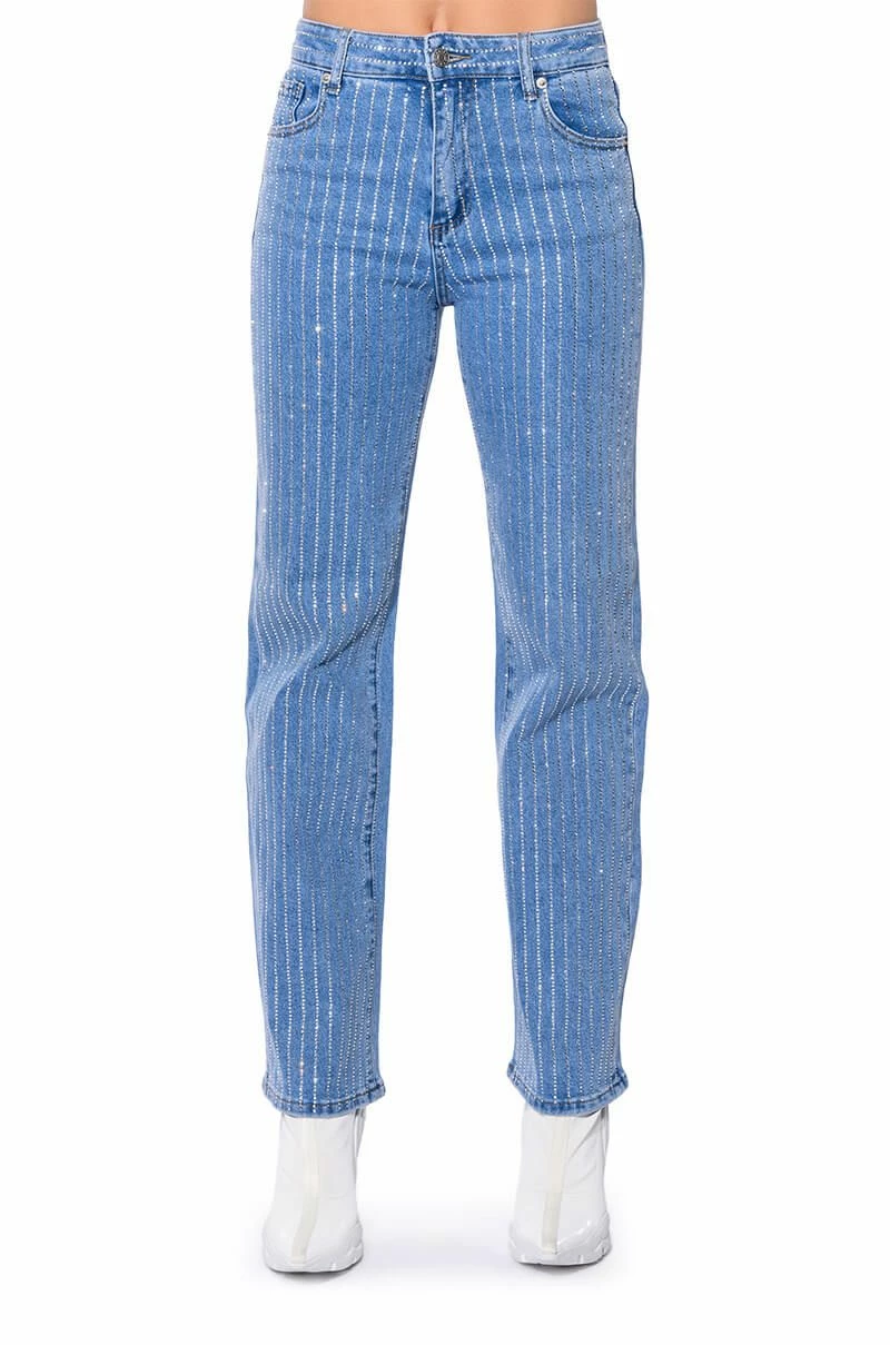KICK BACK PINSTRIPE RHINESTONE WIDE LEG JEANS