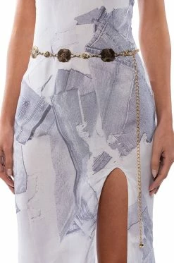 The AKIRA Label Lasso Western Embellished Chain Belt is a chic Western piece made from an embossed faux gold metal base featuring ornate, scalloped coin pendants and an adjustable lobster claw closure.
