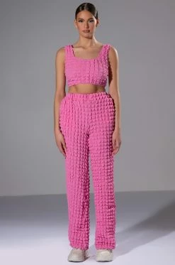 The AKIRA Label Lucy Textured Wide Leg Pant is made from a stretchy popcorn fabrication and features a high rise waist, a wide elastic waistband, slant side pockets, a wide leg silhouette, and a pull-on fit. Pair this piece with the matching AKIRA Label Lucy Textured Button Down Blouse and Lucy Textured Crop Tank Top to complete your look.
