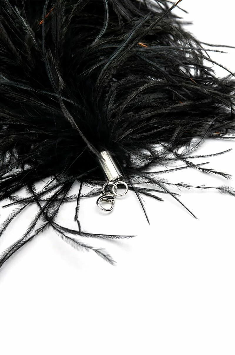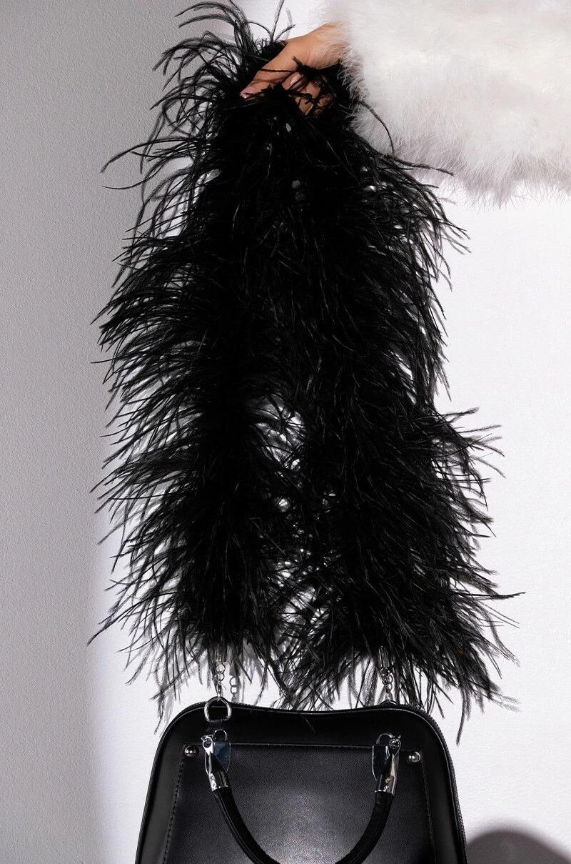 The AKIRA Label Luxe Ostrich Feather Purse Strap is made from a flexible base and features opulent genuine feather detailing with silver faux metal ends and lobster claw closures to clip onto your bags.