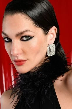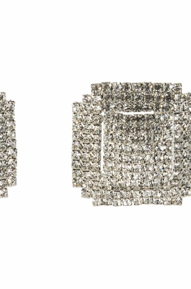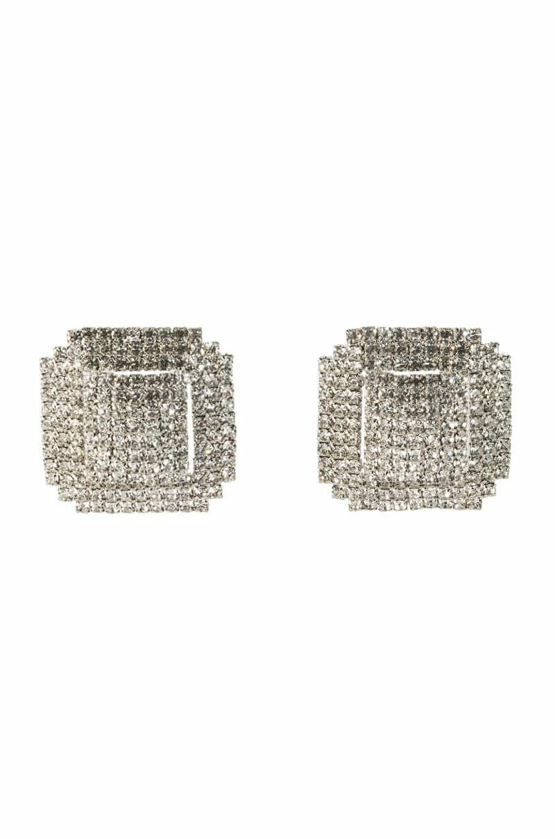 Get more bling for your buck with The AKIRA Label Made Of Money Embellished Statement Studs. These oversized, square stud earrings feature a silver metallic base, subtle, dimensional cut outs, and all-over rhinestone pave detailing. Complete with a post back-style closure.