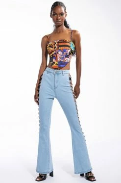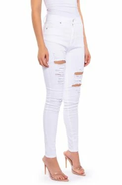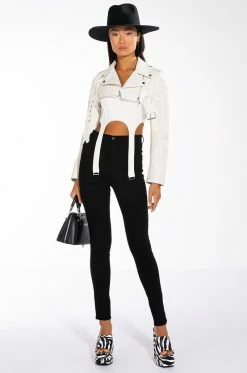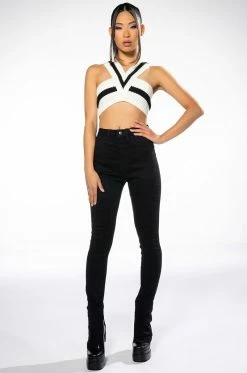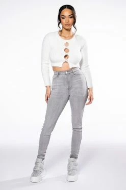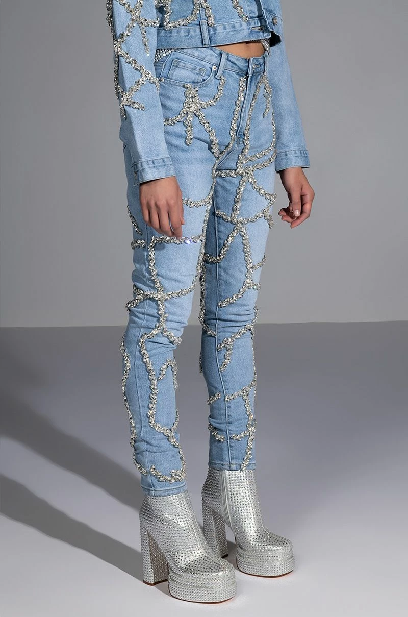 These pants are a dream come true! The AKIRA Label Make A Wish Rhinestone High Waisted Skinny Jean features a high waist rise, a lived-in stone wash, a classic five pocket design, a zipper fly button fasten, and vine-like cascading rhinestone link trim detailing. Pair with the coordinating AKIRA Label Make A Wish Rhinestone Embellished Denim Jacket for a complete look.
