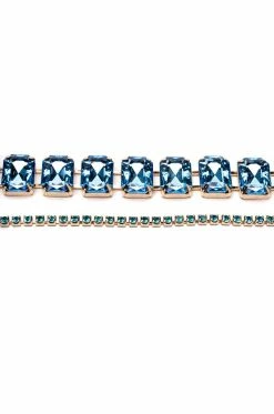 Set the tone with The AKIRA Label Make Waves Statement Necklace Set! This collection features two unique link chain silhouettes with a faux gold metal base. The first features a choker silhouette with linked large rhinestone gems and an adjustable lobster claw closure, the second a smaller square rhinestone link necklace with a lobster claw closure.