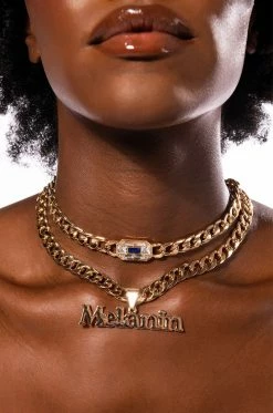 The AKIRA Label Melanin Babe Layered Necklace is made from a faux gold base and features two Cuban link chains: one with a gem-embellished charm, and the other with a fierce โMelaninโ text nameplate pendant. Complete with an adjustable lobster claw closure. Work that melanin, babe!