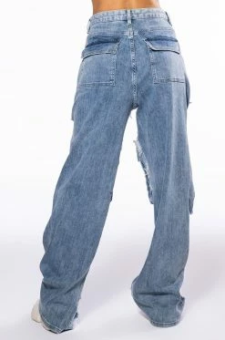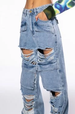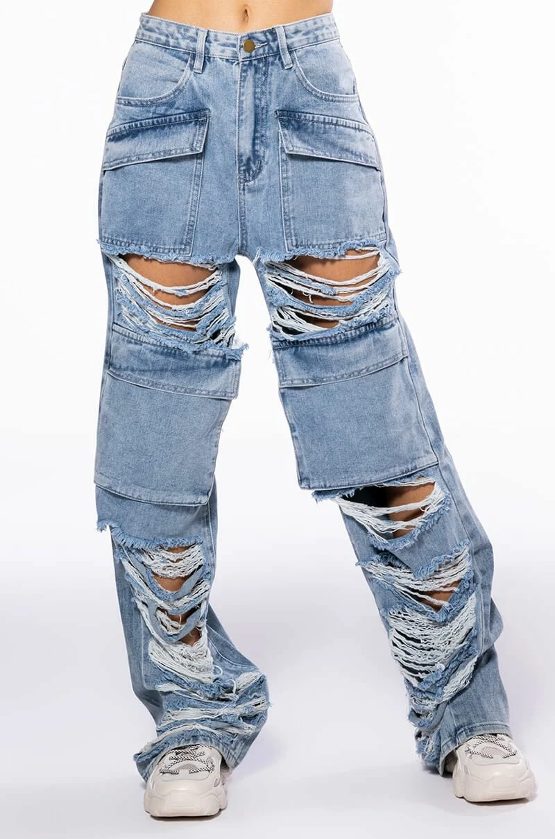 NEVER STRESSED DISTRESSED RELAXED FIT JEANS