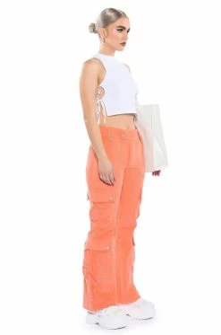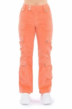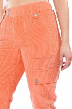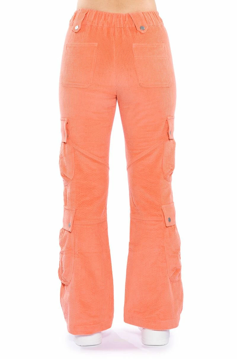 The Nothing But Time Corduroy Cargo Pant is made from a soft, corduroy base fabrication and features an asymmetrical snap buttoned waistband closure, snap button belt loops, an elastic waistband at the back, deep side pockets, and a relaxed fit. Complete with cargo flap pockets along the sides, utility seaming, and slightly flared wide leg bottom hems. Pair with a nude bodysuit and chunky boots for a bold, everyday look!