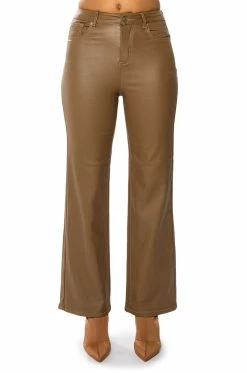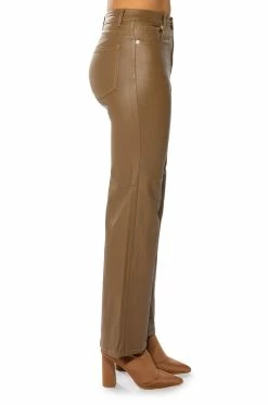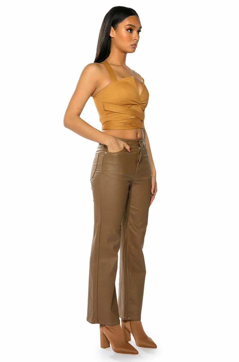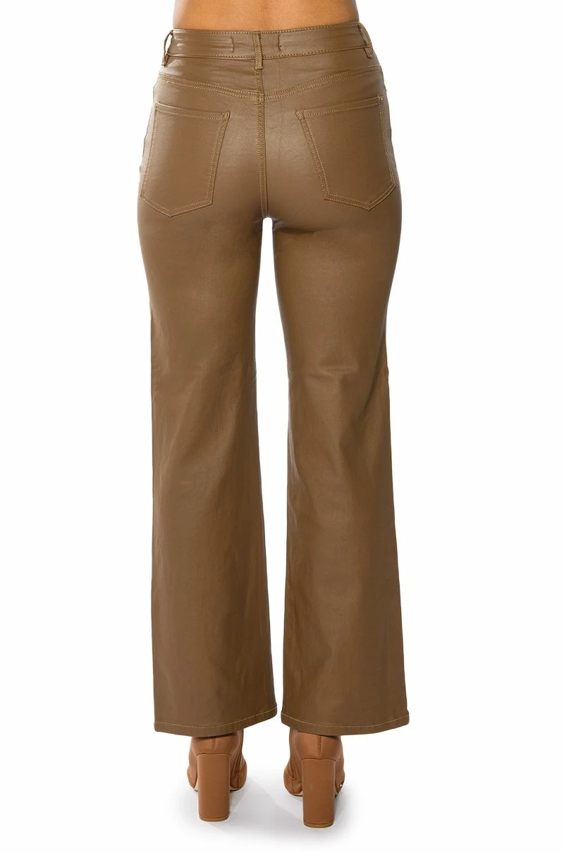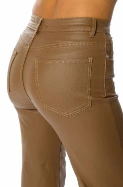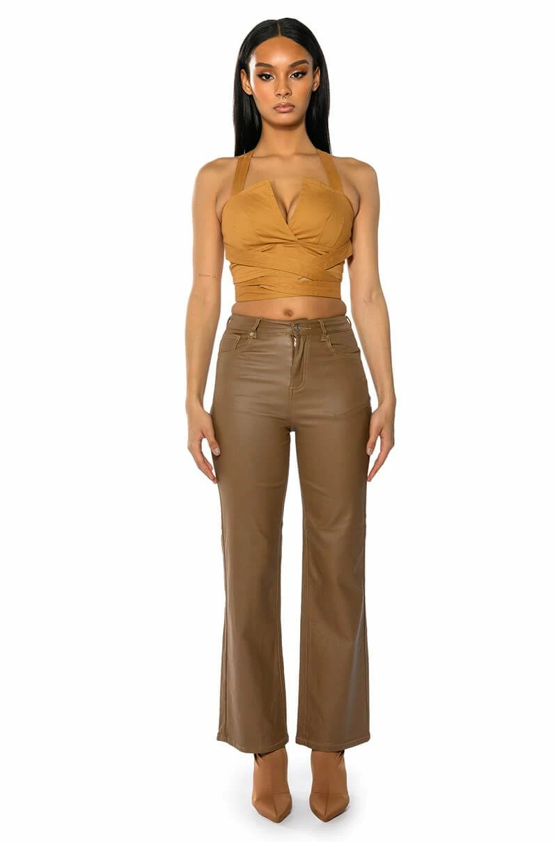It’s giving model off duty. The AKIRA Label Off Duty Fleece Lined Leather Look Coated Straight Leg Pant is made with a soft base and faux leather fabrication. These form flattering pants feature a mid-rise waist, classic 5 pocket design, straight-leg silhouette, and a zip-up button front closure. Pair with a cropped tank, moto jacket, and loafers for an everyday IT-girl look!