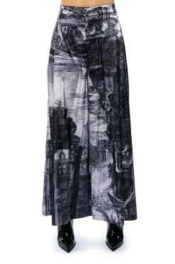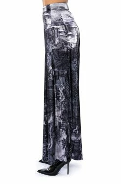 The AKIRA Label Paradise Abstract Wide Leg Pant is part of a stylish two-piece set, perfect for a day – or night – out! Made from a smooth, satin base fabrication, this top features an abstract sketched design, an elastic waistband, hidden side pockets, and an extra wide leg silhouette. Complete with a concealed back zipper closure. Style this number with the matching top, The AKIRA Label Paradise Long Sleeve Abstract Body Suit, and platform heels.