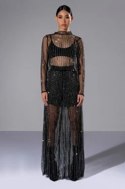 shorts, extra wide hems, and a concealed back zipper. Finish the look off with the matching top, The AKIRA Label Glam Night Out Long Sleeve Embellished Top!